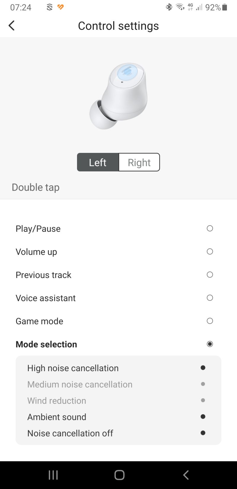 With the app downloaded and installed, the correct size ear tips fitted for a comfortable and secure fit, what do they sound like? Well, I think the sound quality when listening to various genres of music is excellent – the sound is crisp, clear, with some good bass and good top-end volume with no distortion. The same can be said when streaming video or playing games. As for the quality of the sound when taking/making phone calls, I’ve had no complaints and callers can hear me perfectly. This is all with the ANC (Active Noise Cancellation) turned OFF and using the default settings.