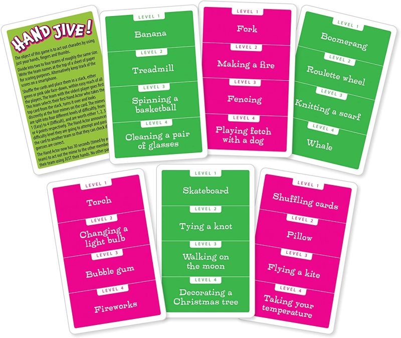 If you have ever played charades and liked it, you will definitely love Hand Jive! It is a twist on the classic game of charades where players have to act out (mime) a wacky mix of words and actions, but you can only use your hands, fingers and thumbs and nothing else. Click here to read my review of Hand Jive!